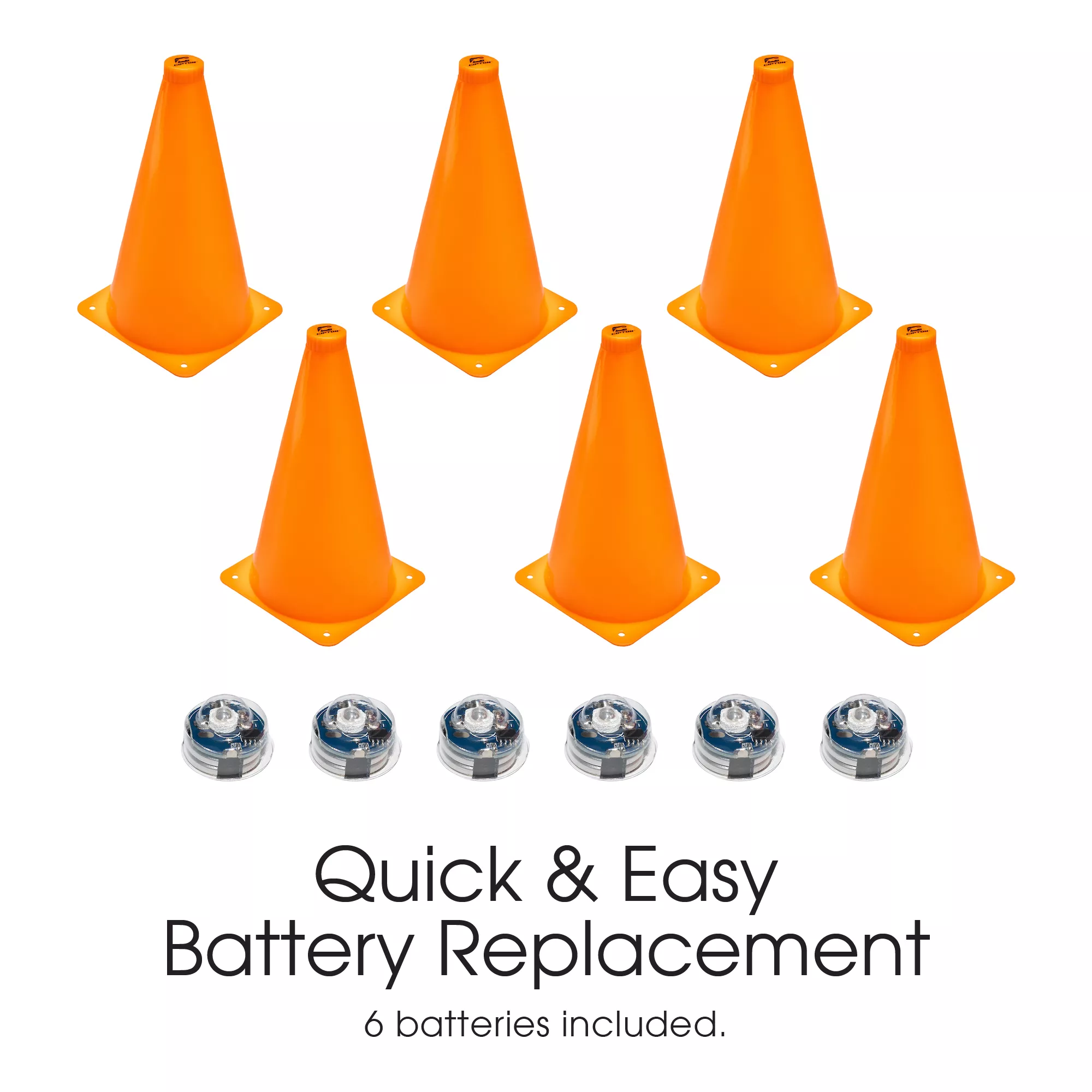 - Includes six battery-powered LED Cones