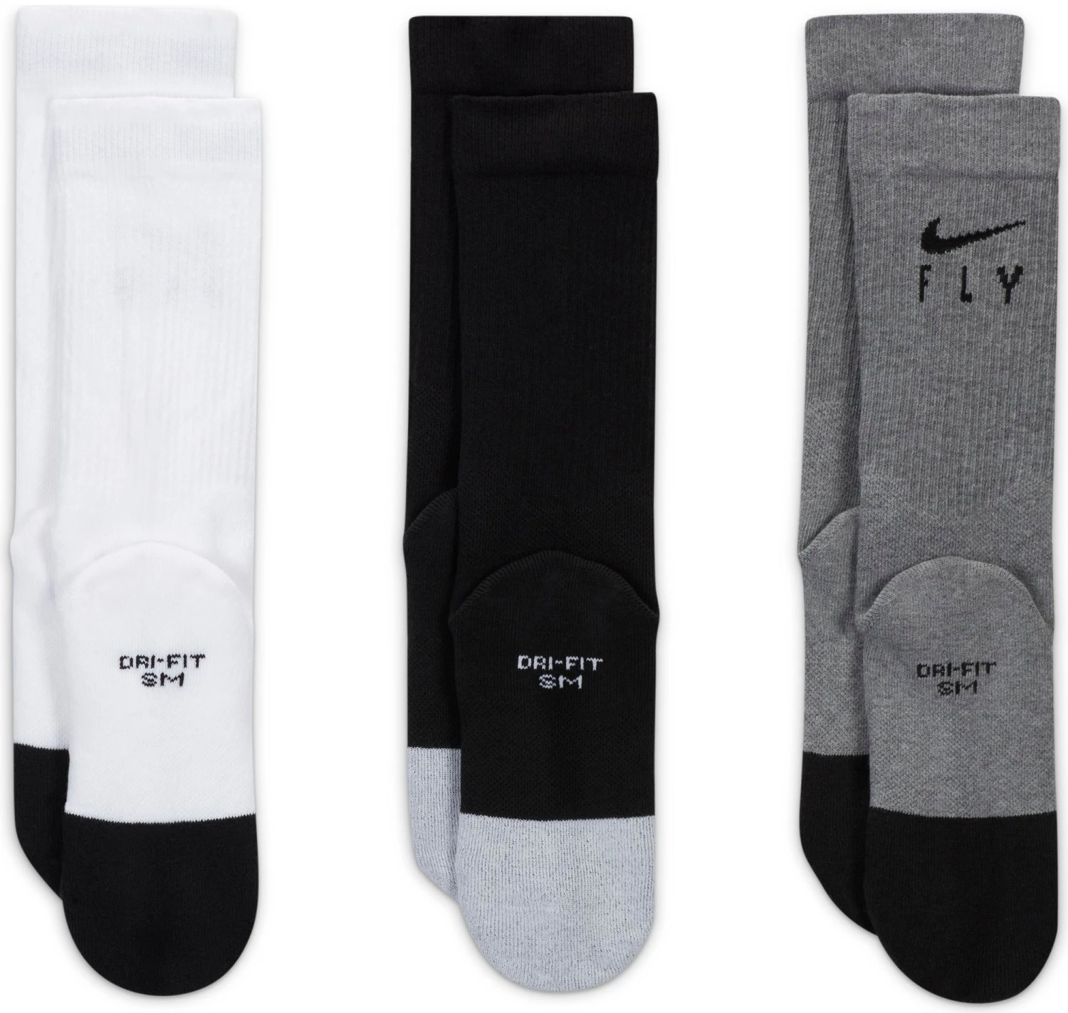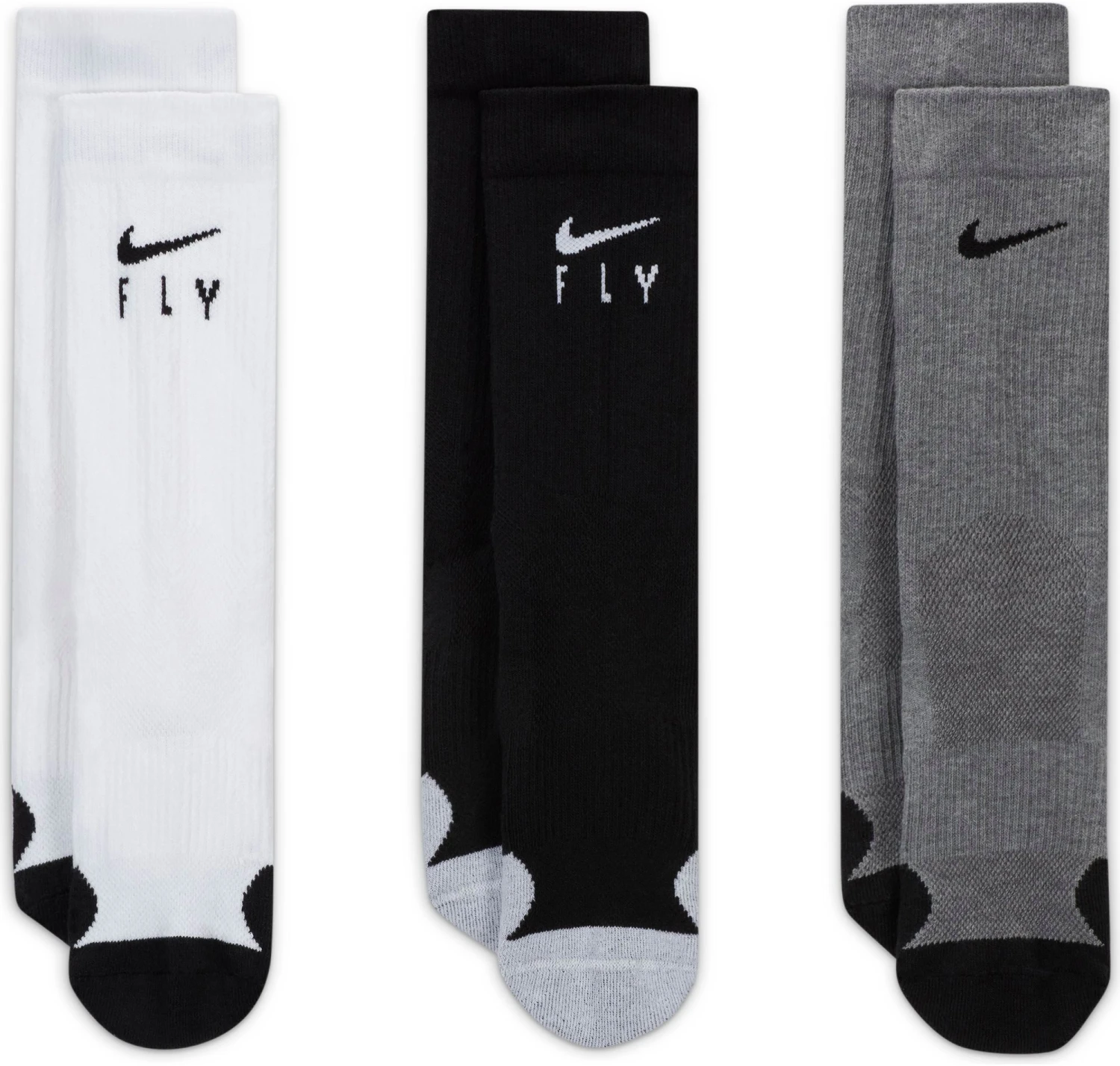 The Nike Elite Socks are the perfect teammate to hit the court, the playground and everywhere in between. This 3-pair set is powered by Dri-FIT technology, plus cushioned and snug where you need it. The Swoosh Fly ties back to our collection inspired by womenโs hoops.